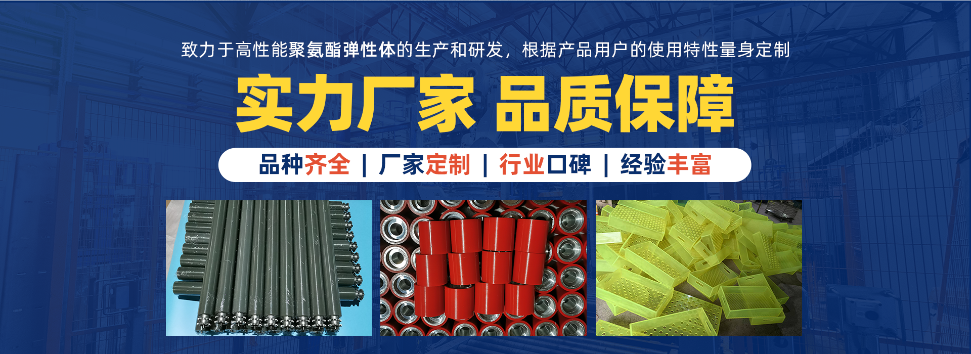 蘇州凱騰聚氨酯制品有限公司多年來一直致力于高性能聚氨酯彈性體的生產(chǎn)和研發(fā)。鑒于聚氨酯彈性體的特殊的出色性能,幾乎所有的工業(yè)系統(tǒng)中都會使用到聚氨酯彈性體的產(chǎn)品,我們的產(chǎn)品服務(wù)于眾多的行業(yè)如:石油、礦山、冶金、工程機械、汽車制造、多晶硅生產(chǎn)、核工業(yè)項目、紡織印染包裝、農(nóng)牧、金屬加工、水泥陶瓷、糧食碼頭、物流倉儲自動化、粉體成型與研磨等等;由于不同的行業(yè)和工況條件對聚氨酯彈性體的產(chǎn)品的使用性能要求是不同的,我們可以根據(jù)用戶產(chǎn)品特別的使用特性專門為用戶量身定制產(chǎn)品。 了解更多+